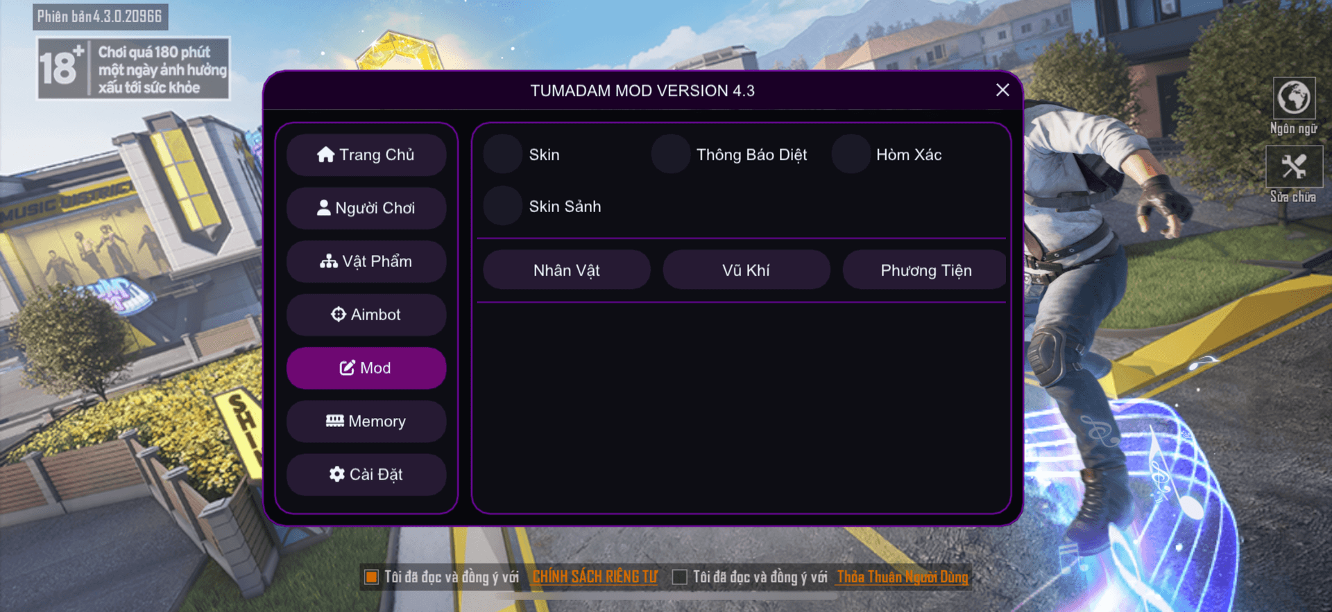 - Mod Skin hoặc chế độ gốc là wow sẽ bị văng.